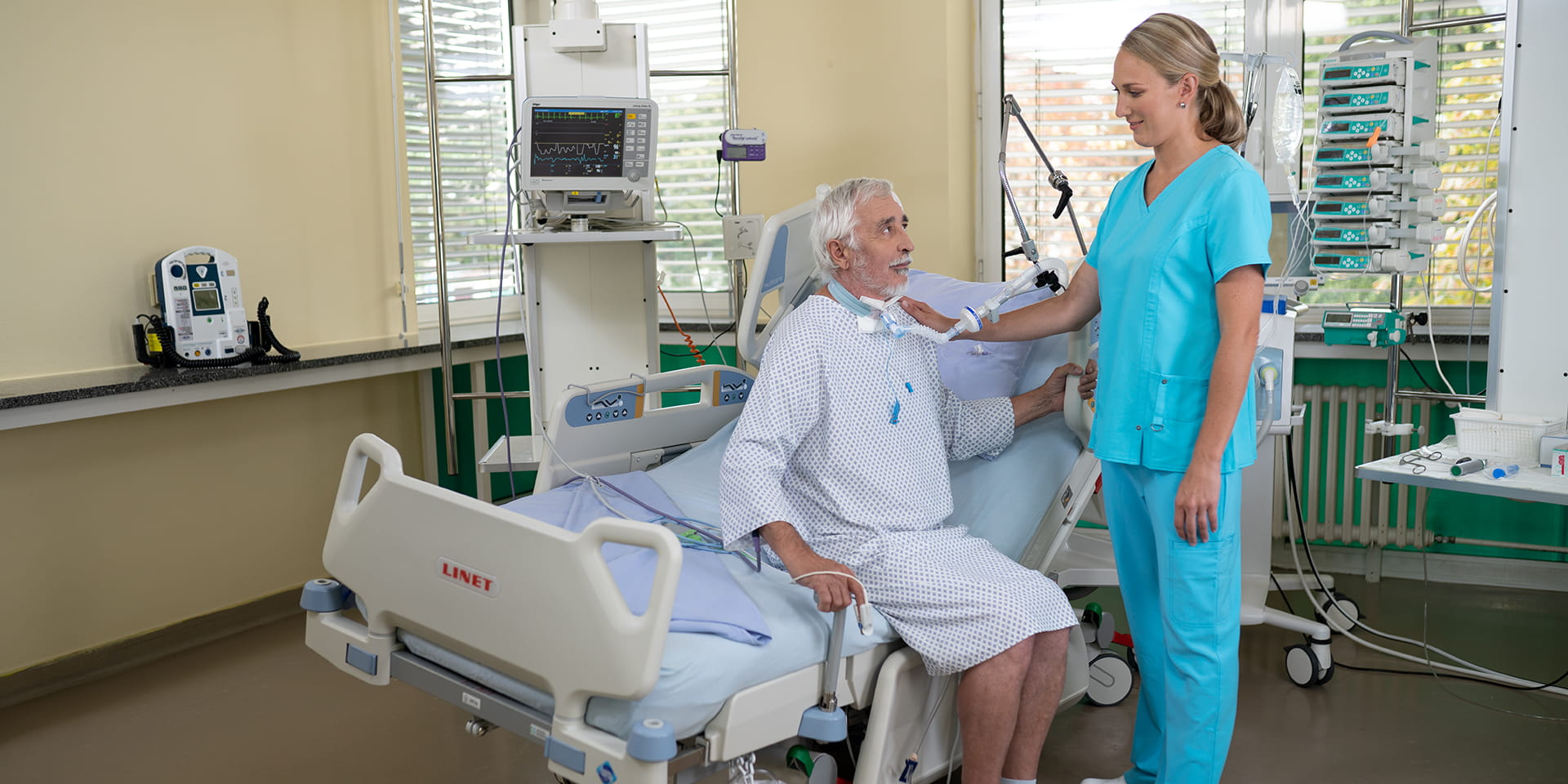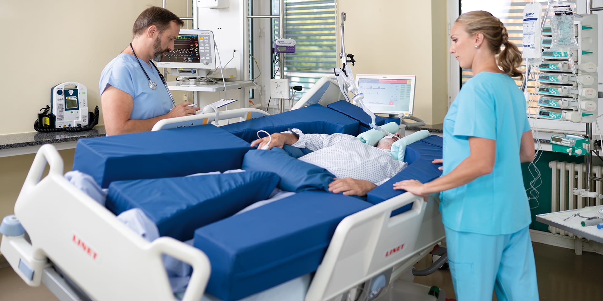 LINET’s platform provides continuous lateral rotation therapy via the bed frame known as Automatic Lateral Therapy® (ALT). Simple programming allows patients to rotate up to 30 degrees for continuous therapy. This feature of Multicare helps prevent ventilator associated pneumonia (VAP), mobilize secretions and improve gas exchange.