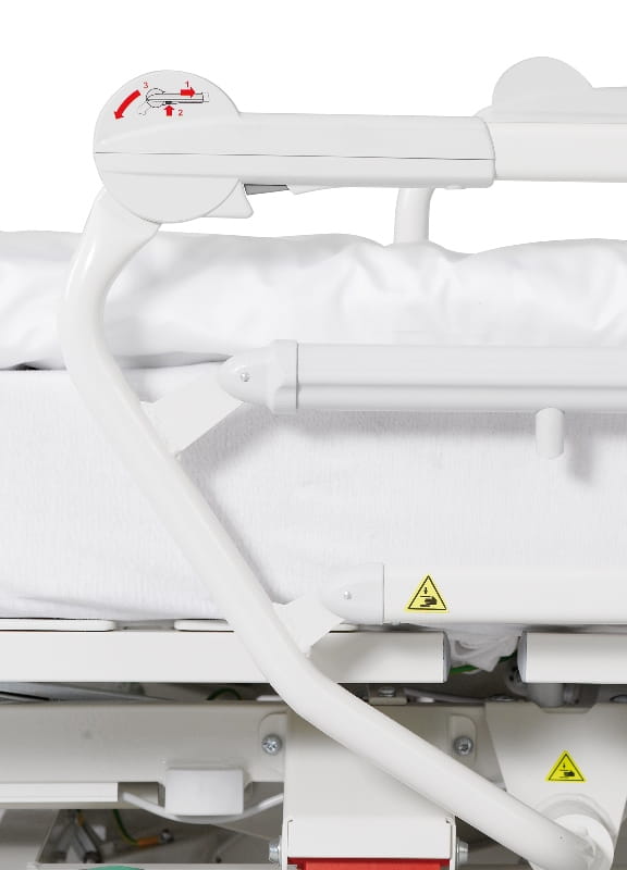 • Bariatric will be available only with single collapsible siderails with the height extender. Exceptional two steps release mechanism protects againist unintentional opening both medical staff and patient. Outstanding strenght and stability helps hospital staff to protect the patient.