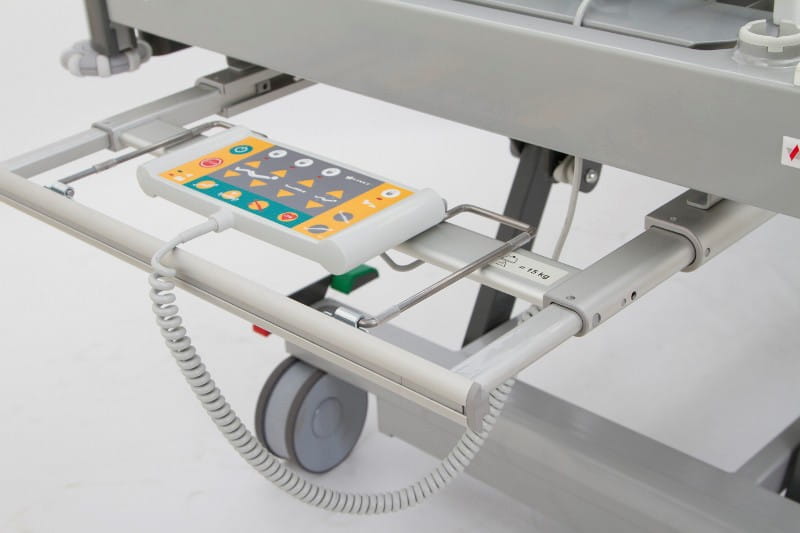 — En actionnant un seul bouton, le plan de couchage s’arrête automatiquement à 42 cm (en montée ou en descente) et le buste se lève pour accompagner le patient lorsqu’il sort du lit
