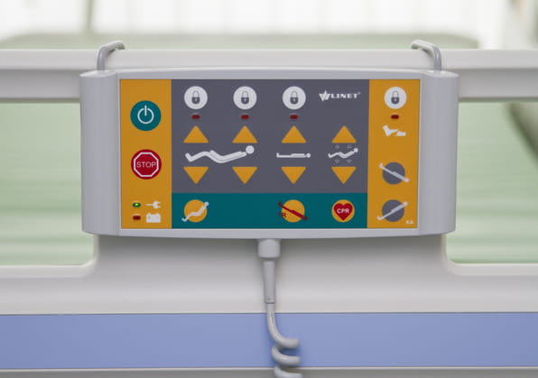 L‘une des pannes les plus courantes sur un lit hospitalier est provoquée par le coincement du lit sous un obstacle (fenêtre ouverte...) ou par le lit surchargé. Les réparations peuvent être longues et coûteuses. eleganza 1 lit dispose d‘une protection indépendante pour chaque moteur.