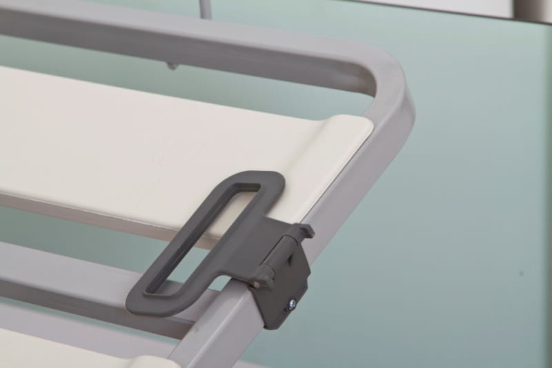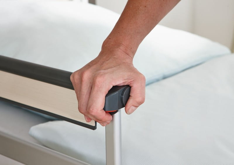 - La plupart du temps, les barrières 3/4 suffisent à protéger le patient de chutes éventuelles. Mais quand cela s’avère nécessaire, l’ajout d’un protecteur en pied de lit, permet de protéger toute la longueur du plan de couchage. Grâce à son système de déverrouillage sur le haut, le soignant accompagne le mouvement de la barrière et ne se fait pas mal au dos. Les barrières ¾ de l’Image 3 peuvent être équipées d’une réhausse, permettant ainsi l’utilisation de matelas à air en tout sécurité.