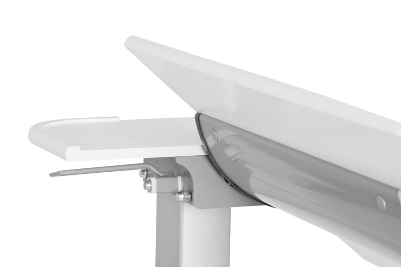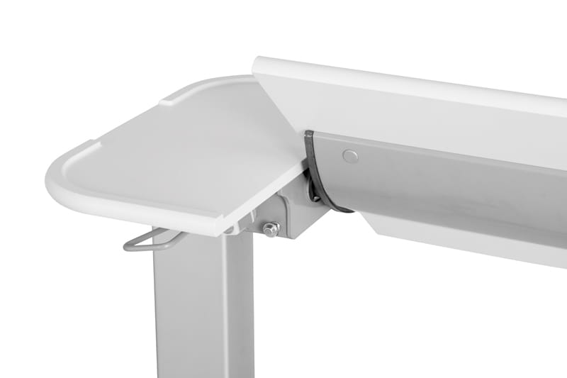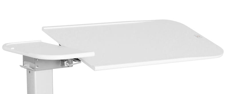La table à manger au lit Linea est légère, facile à nettoyer, à hauteur variable et dotée d'un plateau inclinable.